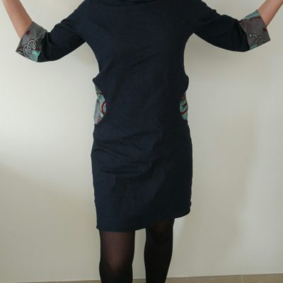 Et voici mon deuxième Inédit !!! J’adore la forme du col et les multiples versions que l’on peut coudre (différents tissus, différentes couleurs, passepoil ou non, bord cote ou non… ), on coud ce que l’on préfère et c’est ça qui me plait.