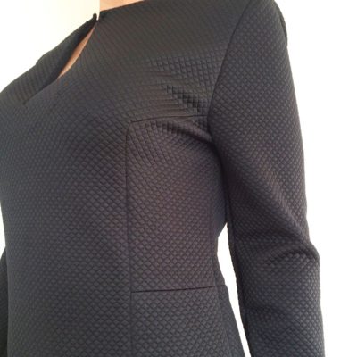 J’ai suivi le tableau de tailles et j’en suis satisfaite ; peut-être que je peux remonter un peu la pince poitrine pour plus de précision mais il n’y a rien de choquant. Le patron pochette est parfaitement clair et le cahier d’accompagnement explicite. C’est un modèle simple, qui peut convenir aux débutantes rigoureuses (il faut l’être pour coudre des courbes sans les déformer) et qui peut apporter une grande satisfaction vu le rapport « investissement temps/ rendu du vêtement ». Un tuto vidéo est d’ailleurs mis à disposition par la créatrice ici.