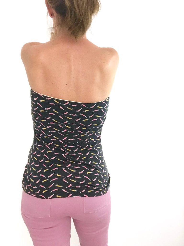 Easy Top est un bustier ajusté ! Oui, oui, oui ! Le patron est prés du corps. Pourquoi ? Parce que j’aime bien, en tout cas pour le moment ! Et puis cela se marie à merveille avec Madinina ! ;)