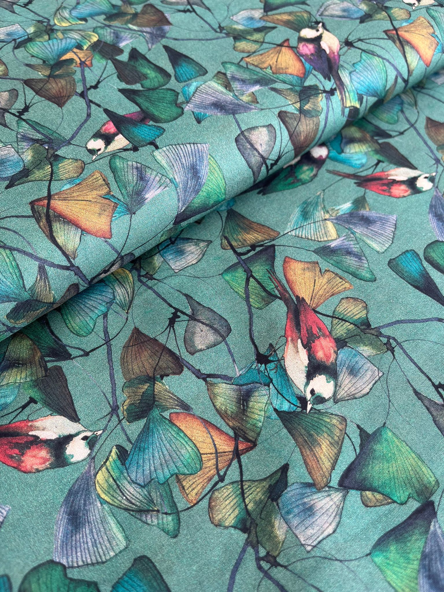 TTC/M. Batiste coton Lawn Bio qualité supérieure motif Birds, doux, parfait pour des chemisiers, blouses estivales, robe (transparence légère en plein soleil), doublures. Aiguille 60-70- Très belle souplesse.