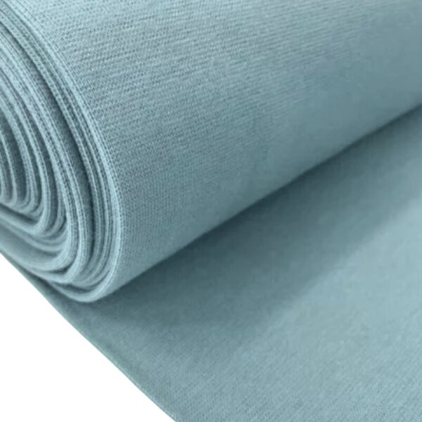TTC/M. Bord côtes tubulaire coton bio bleu glacier, très extensible et doux, il est parfait pour vos finitions de tee-shirts, sweats.