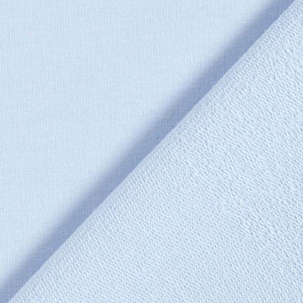 TTC/M. French Terry bio Uni bleu glacier ,envers bouclé, parfait pour des sweats, gilets, bas enfants, jogging demi-saison.