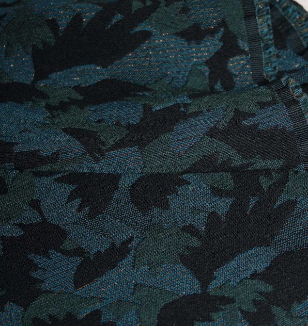 TTC/M. Jacquard Crocus Vert Eglantine & Zoé parfait pour des vestes courtes ou longues, jupes ou shorts.Créé en France – Teint et tissé en France – 72 % des fils qui composent ce jacquard sont recyclés.