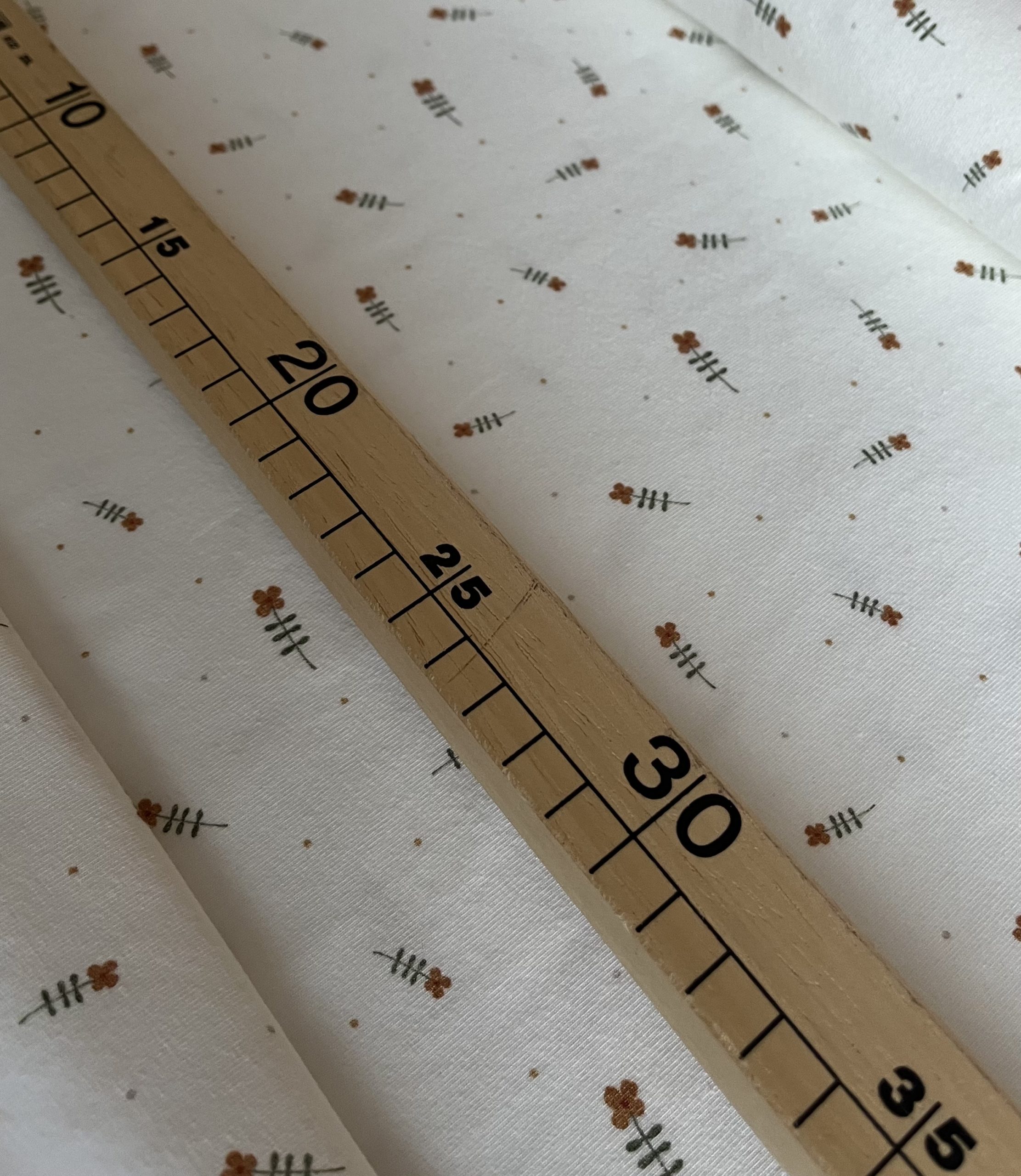 TTC/M Jersey Bio blanc cassé fleur des champs, idéal pour des tee-shirts, body, petits pantalons enfants, robes, jupes évasées. Tombé mi-lourd et bonne souplesse.