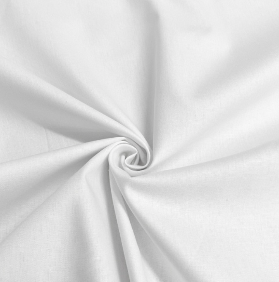 TTC/M. Popeline Bio unie Blanc, facile à coudre avec une aiguille universelle 70. Pour des chemisiers, blouses, chemises homme, robes, accessoires  etc…  très douce , souplesse moyenne.